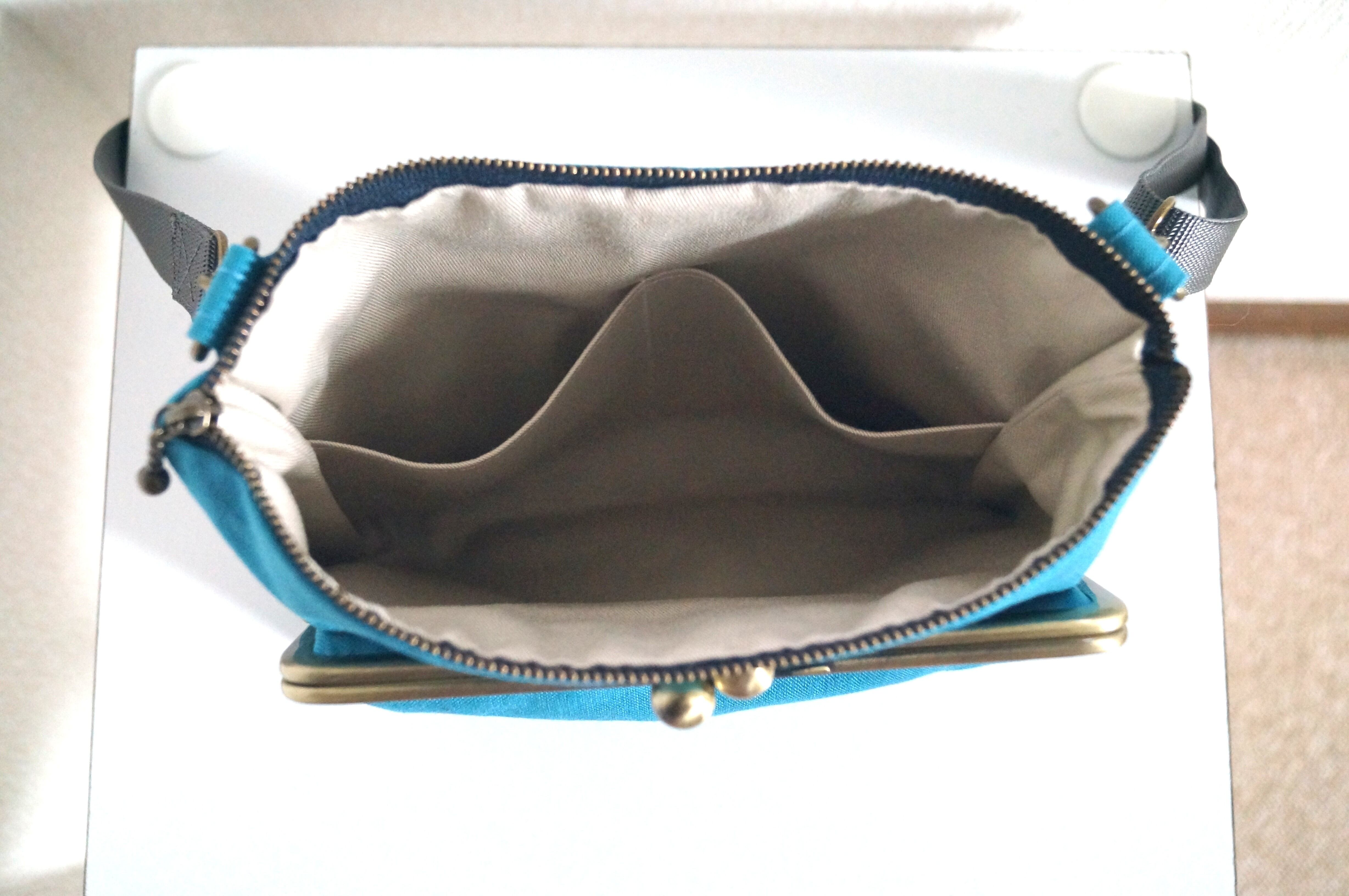 がま口とファスナー式のポーチが一体になったサコッシュです。