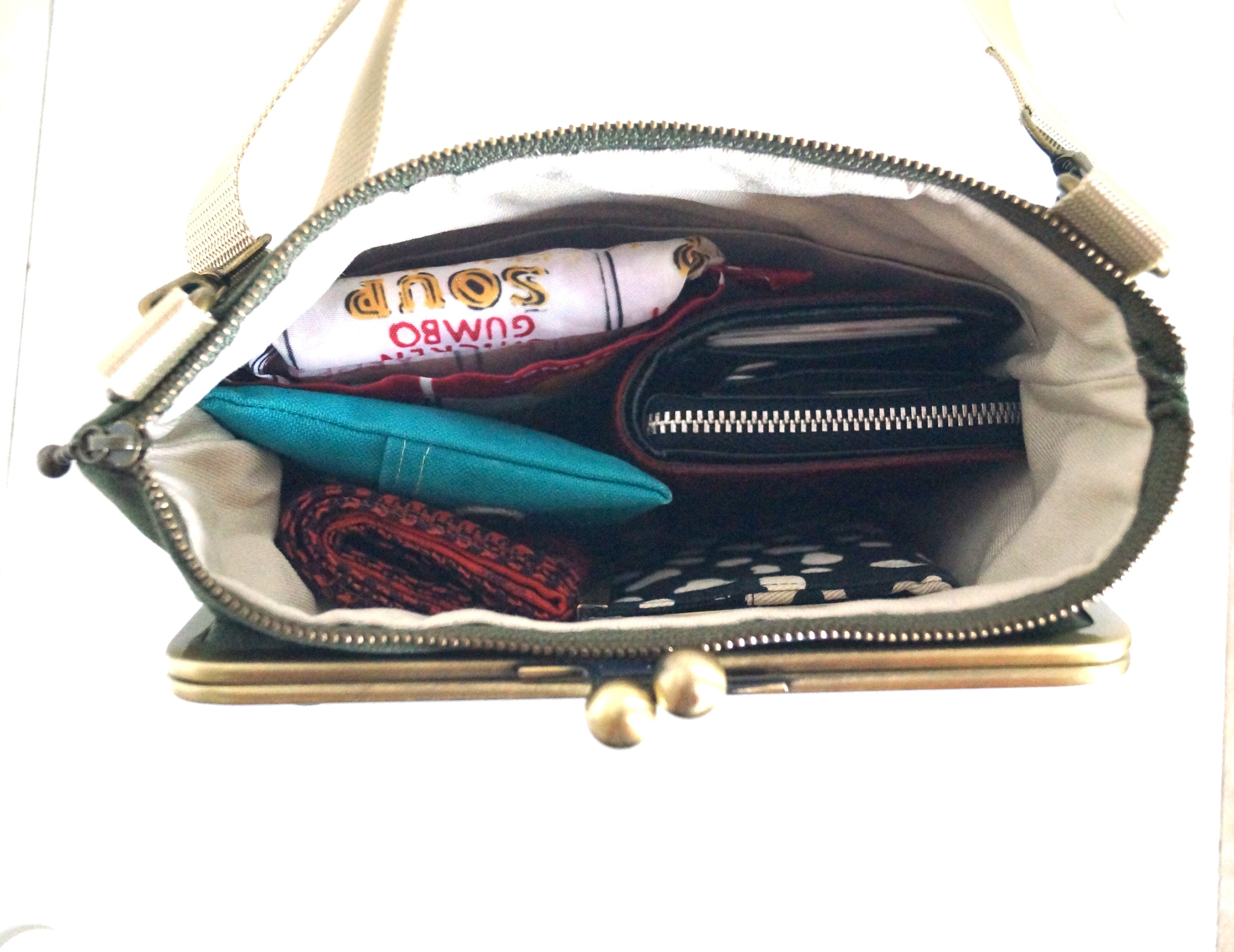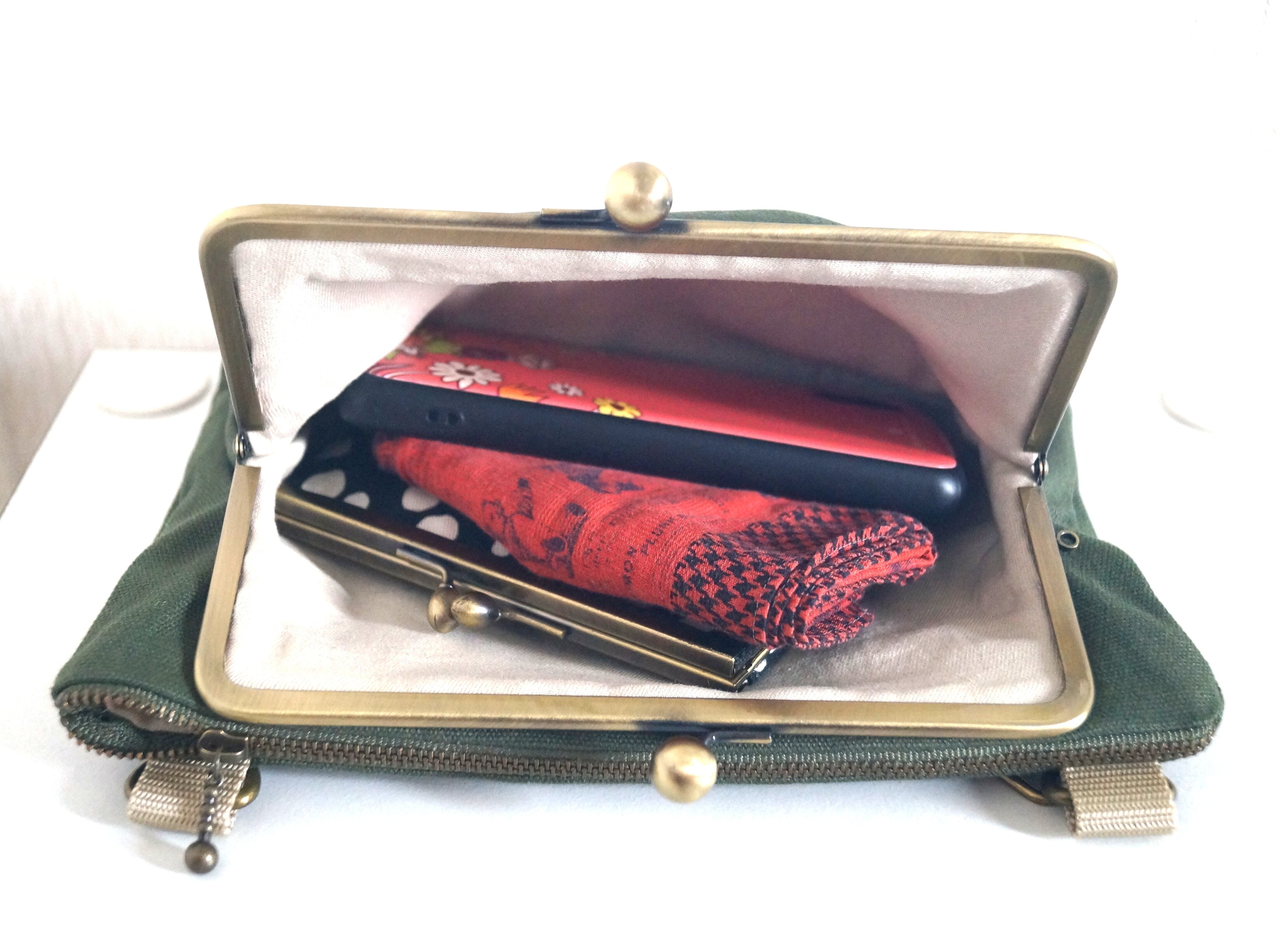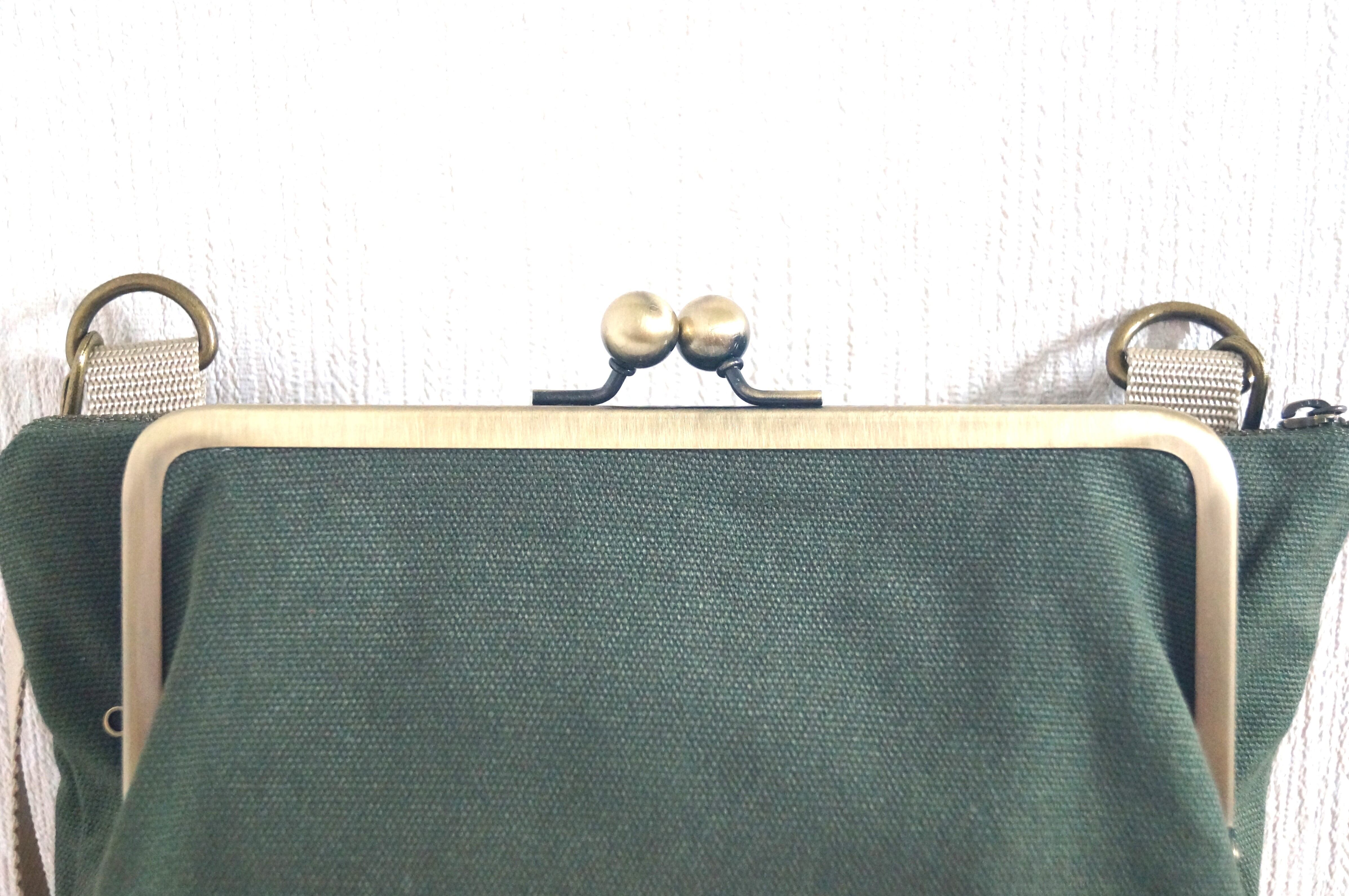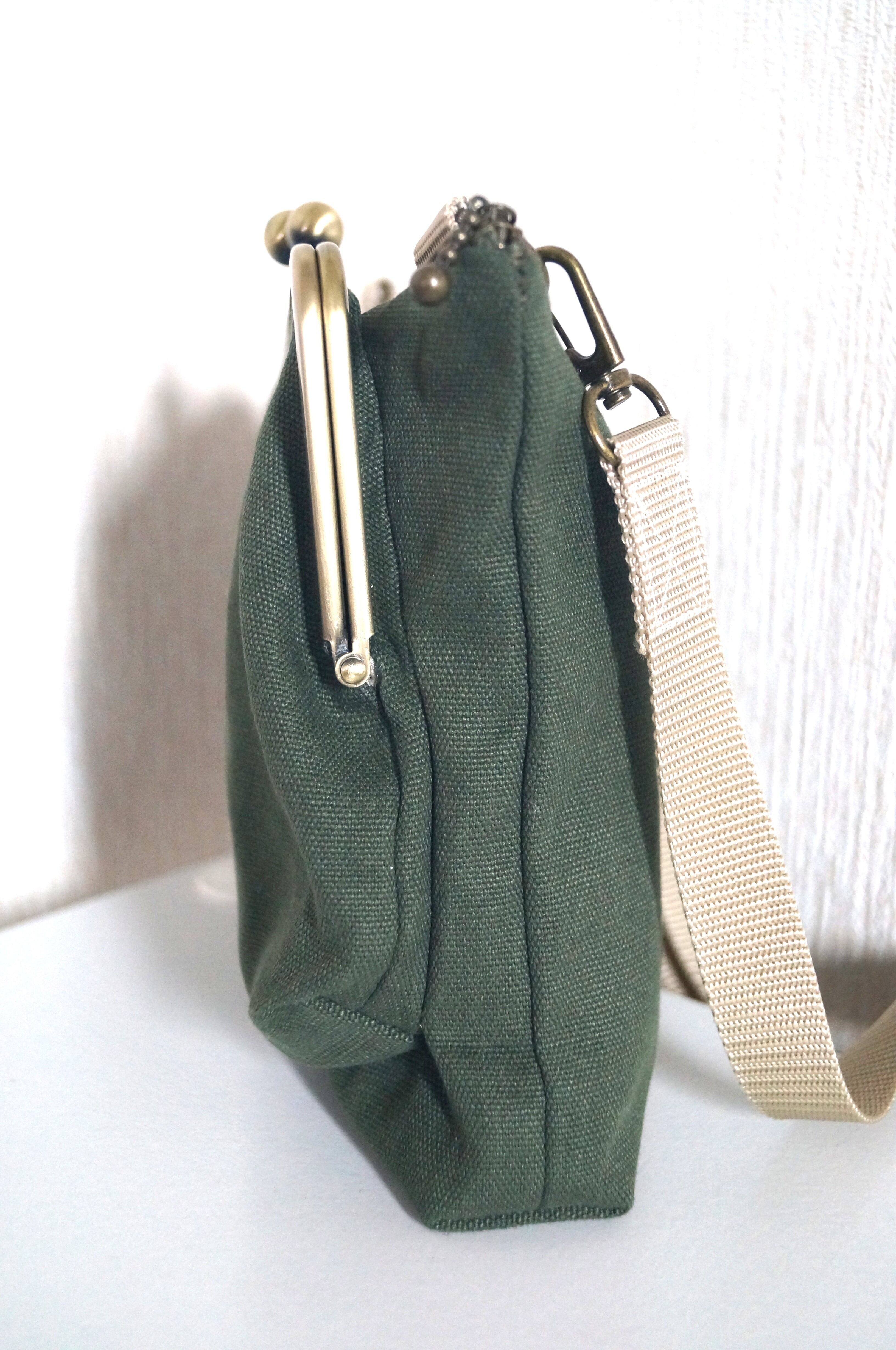 がま口がくっついたサコッシュ/ショルダーバッグ(カーキ)の登場です!