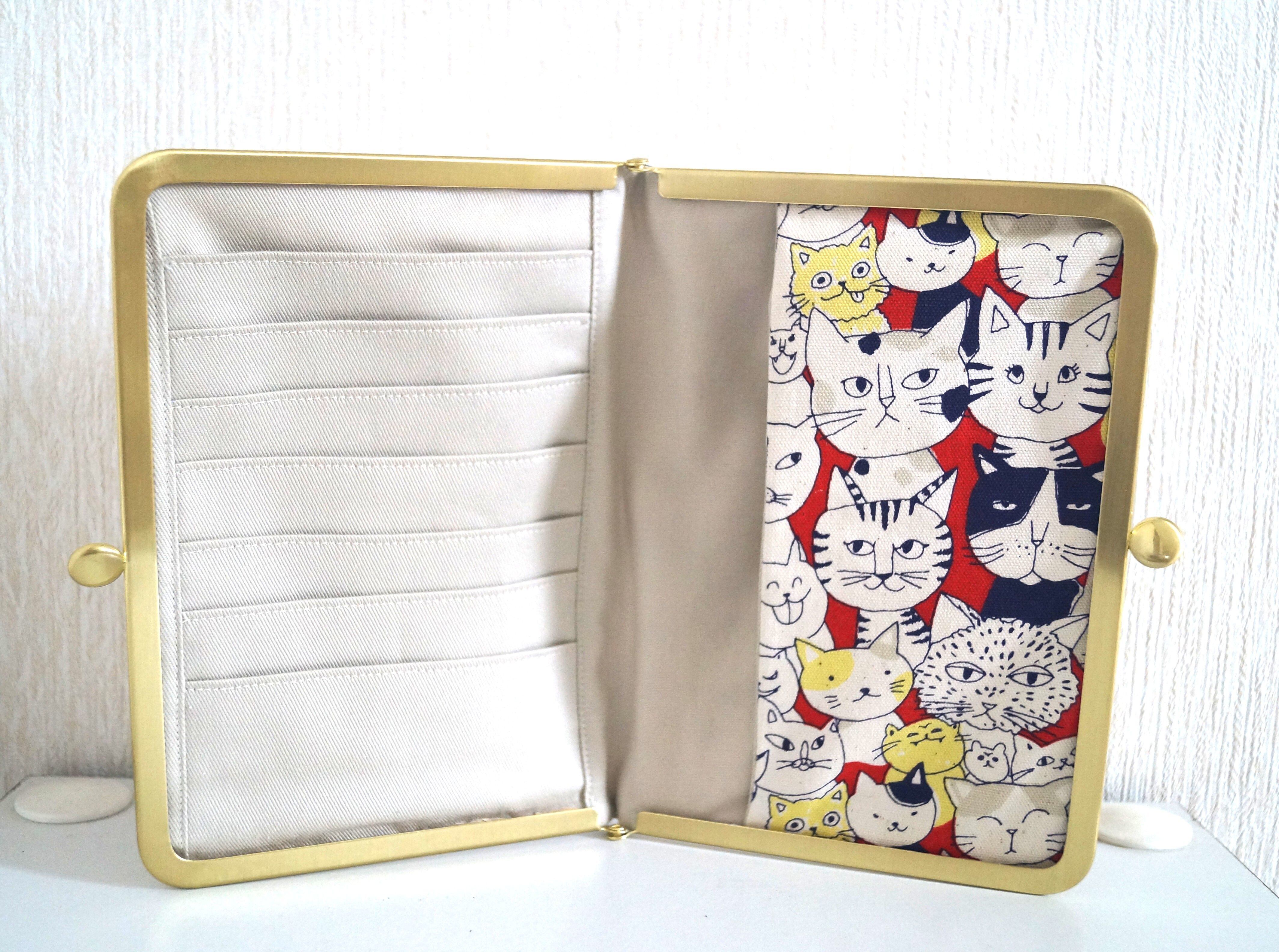 お薬手帳・通帳・母子手帳とカードが入るがま口ケース(猫だらけ)